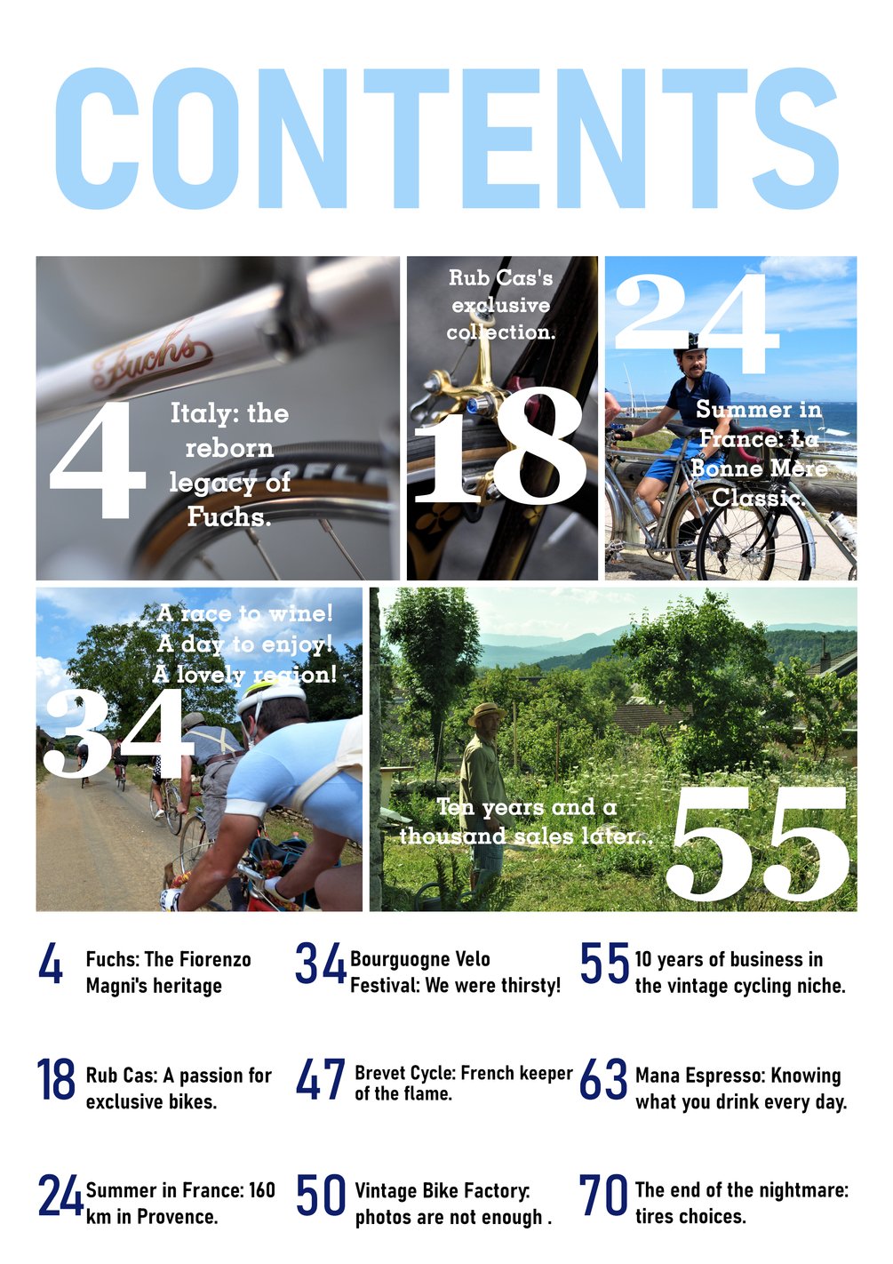 These 79 pages of our magazine, are an invitation to travel with us, to discover the history of the cycling industry and also people who are, like you and me, sharing the same passion for vintage bikes.